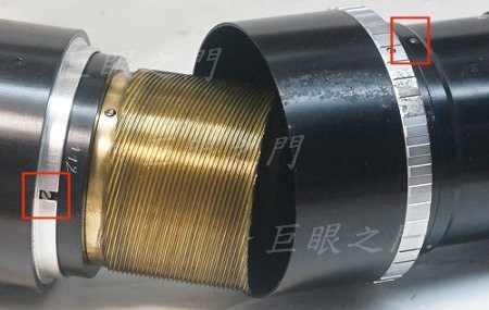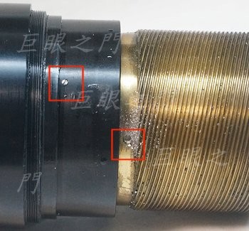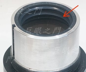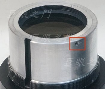 這個位置的止付螺絲是固定前端鏡頭的,這幾段的止付螺絲都要固定在原來的痕跡上,否則光圈值與基準點會對不準。