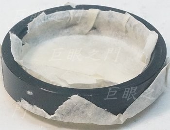 把鏡片用膠帶貼起來施工。本來是用銑刀用手工銑,但很難弄得平整。