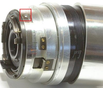 對焦環上的沈頭止付螺絲鬆開就可以將對焦環由尾巴端取下。取下後可以看到複螺紋。