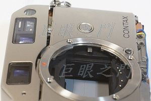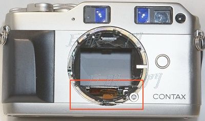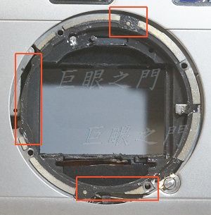 由這張圖可以看出來其實這台機身的底片的中心點並沒有對正鏡頭的中心點,還偏的很明顯呢!雖然拍攝應該沒有問題,就是有些移軸的效果而已,但為何會這樣設計呢,好奇怪。
