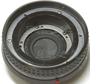 把光圈環轉到最大光圈位置,旋轉鏡心,使得光圈葉片剛好開到最大,再把側面的止付螺絲鎖緊就固定了鏡心。