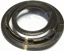 此鏡後面本來裝了 M42 接 Nikon 的轉接環,有鏡片的那種,有凹透鏡才能對焦到無限遠,鏡片已經很鬆,碰碰就脫落了,而且轉接環很緊,還拿不下來,鏡主說可以車掉或是磨掉,那就好辦了。