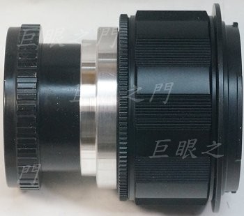 這個改法與 Dokumar 38/8 的改法差不多,都是車個有內螺紋的鋁環轉到鏡身上,外面算好位置車 M52 的螺紋。