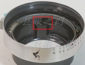 後鏡組的外圍有個有卡槽缺口的鎖環,鎖環轉開就可以取下鏡組,鏡組裡面有墊環,要拿掉。