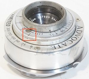 紅框中有個紅點,應該是對焦指示用的,但是無限遠可以轉到過焦很多。猜想鏡主可能要裝在 M 機身上使用,所以將紅點對準無限遠處做為無限遠,這樣,對焦表尺才是對的,才可以估焦。