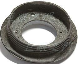 塑膠環是做什麼的呢?原來這個座子車成剩下平板時其實很薄,無法由接環上打螺絲鎖住,暫時可以,但是可能沒多久就會鬆動。於是在接環中用 AB 膠黏了一個塑膠管車的環,因為接環內是 42 接環,有螺絲,塑膠管外面也鋸些凹槽,這樣用 AB 膠黏合應該沒什麼問題,因為兩面都要凹槽就比較牢固。