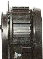 因為法蘭距差了約 3mm,所以前面的鏡頭組件要車掉一截才能轉的更靠近接環。但是原來的複螺紋與接環之間有些距離,也就是說轉到最近時,因為後面沒有螺紋,所以鏡頭仍然無法對焦到無限遠。
