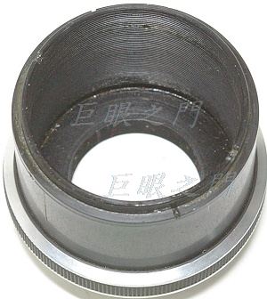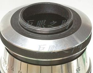 尾巴是 M39 接環,但是法蘭距可不是 M39 的法蘭距,法蘭距差不多有 8 ~ 9 cm,可能是 120 相機用的鏡頭,尾巴的花紋橡皮內有止付螺絲,猜想拆了大概就可以換接環。