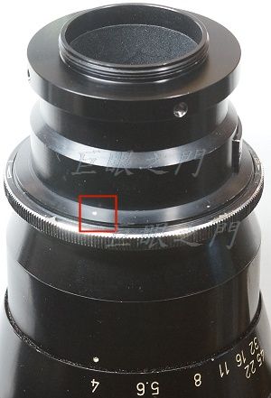 由側面用沈頭固定螺絲鎖上,為何不用一般螺絲,因為此鏡有腳架環,而 M42 螺紋不一定能對準鏡身以及機身中線,於是做成可調整角度的,這是內六角螺絲,鏡主要自己去配適合的內六角扳手。