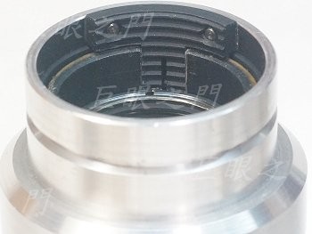 尾巴側面的止付螺絲拆除後可以將 C 接環取下,裡面有個槽,是鎖止付螺絲用的,右方有兩隻螺絲,不用動它,這是固定對焦定位器用的。