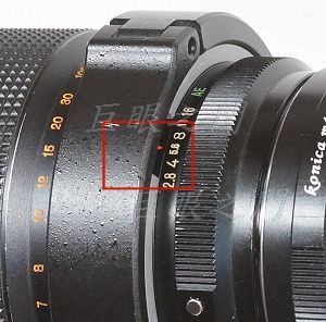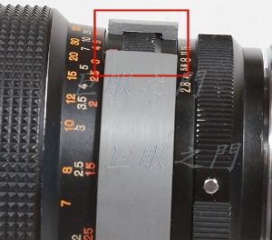 由塑膠環鋸開的縫隙中還可以看到光圈對準的記號。