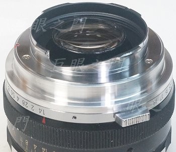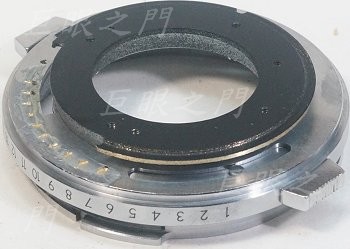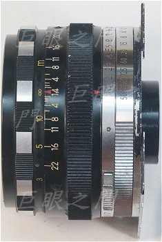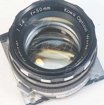 很老的 Kowa 135 RF 機身拆下的鏡頭,此機身名稱為 Kallo,後來改名為 Kowa,請自行查閱網路資料。此機身為可換鏡頭之 RF 相機,鏡頭光圈控制機構在機身上,圖中鏡主已經將鏡頭座子拆下,鏡主想改為 LM 用的轉接環。