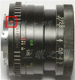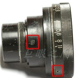 鏡頭原來好像是電影鏡,連著一個大大的外殼。外殼上有個窗子,由窗中調整光圈距離。