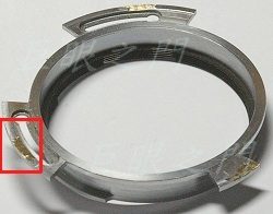 另外一部份是可以轉動的內環,紅框中的位置,本來有三個突起,因為要改鏡用,已經被磨掉了。