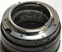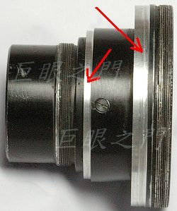 這個位置就是調整觀景窗範圍的,調這個很麻煩,要磨一下,裝上機身,比對一下,然後接環又要拆掉,因為不能裝在鏡頭上磨,會掉屑,拆了再磨一下,再裝上測試 ,磨的還不夠,又再拆,再磨,再裝,測試,再拆...。
