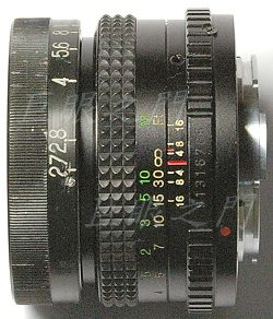 廢鏡(現在似乎不應該稱為廢鏡了)對焦環上貼上花紋橡皮,將光圈環上的標示區調整一下,要在使用時看得到光圈值才行,用光圈環上的三隻豆形螺絲就可以任意調整了。