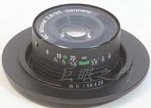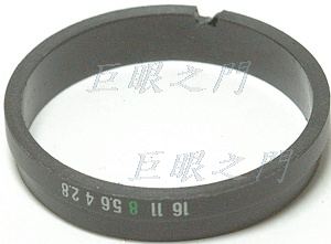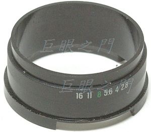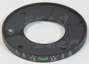 圖中可以看到其實光圈環與座子之間空間很小,大約只有 3 mm 左右,剛好可以露出光圈數值,其實此鏡的光圈環有點詭異,上面只有一個小綠點,而沒有數值,有數值的部份反而是固定的。