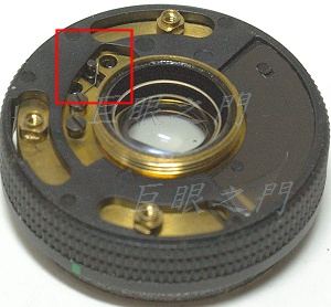 上面紅框中的凸起是控制光圈開闔的,上面有個銅的套筒,非常小,要注意不要弄丟了。