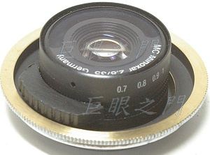 大致組回去,有人改為 C 接環,改起來大概就像圖中這樣,不過接環與光圈數字之間會更短一點,這樣改起來小小一隻還滿袖珍的,不過機主想改 L39。