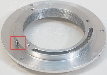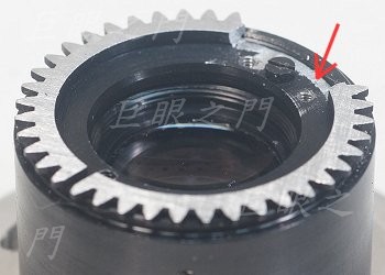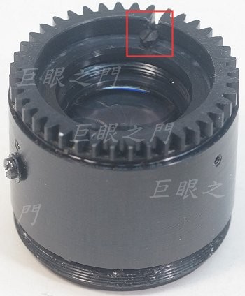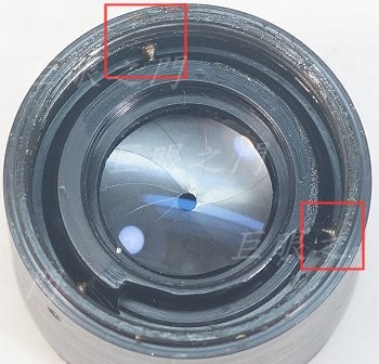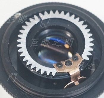 尾巴,齒輪狀的是控制光圈的,紅框中螺絲是外面齒輪狀零件與內部光圈機構連動用的。