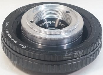 鏡主要用這樣的對焦筒對焦,外面是 M65 的對焦筒,裡面有 M42 螺紋,M42 螺紋的法蘭距是標準 M42,任何 M42 法蘭距的鏡頭裝上就可以用了。
