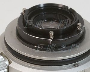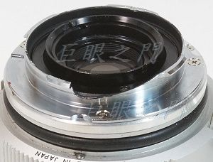 反面,上下有兩個凸起的插刀,鏡主要改為 Leica M 接環,本來想做非破壞性改,但是拆開後發現沒有辦法,只好把插刀磨掉。