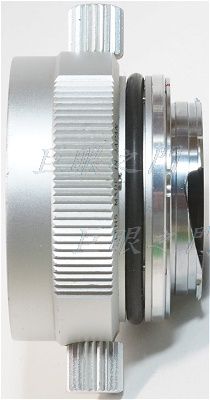 只好把原來的插刀磨掉,否則塞不進 Leica M 接環內。改 LM 後面還有些空間,所以車了一個鋁環墊在尾巴上,要鎖在原來鏡身凸出處的邊緣。