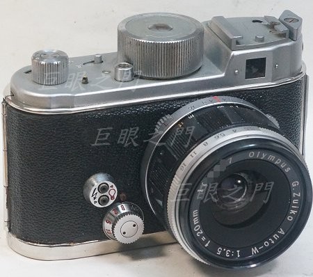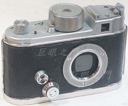 前面,快門在機身內,但並非單眼。這台是使用 26 mm 的螺紋,螺距 0.75 mm 。拍攝畫面 24 x 24 ,方形畫面。