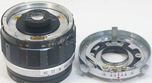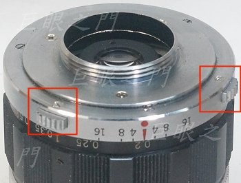 裡面都拆掉,原來有兩個凸起,是拆鏡頭鈕以及縮光圈鈕,因為拆掉會有大孔洞,所以還是鎖回去。