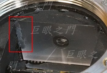 對焦屏上方的檔片碰一下竟然就鬆了!就先取下,底下的對焦屏竟然也鬆的很。這樣重新固定才行。