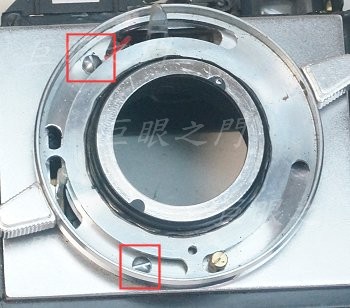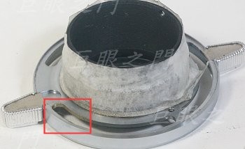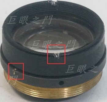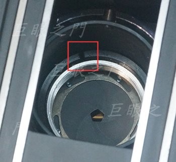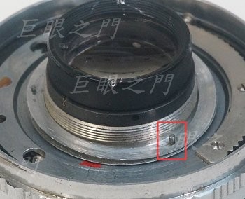 要先把後鏡組取出,上方紅框中的卡槽只能把鎖最後鏡片的外環取下,要注意鏡片不要掉出來。要拆後鏡組要卡在下方紅框中的卡槽上轉出來。