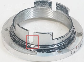 原來對焦最近只有一米,太遠了,稍微改造一下。把對焦系統分解開,螺紋處用遮蔽膠帶貼起來,把紅框中的挖空部分挖長一些,挖到接近側面突出物附近。