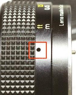 紅框中的則是調整無限遠的固定螺絲,一共有三顆,都轉鬆就可以調整對焦環的角度。