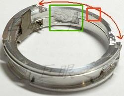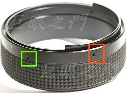 這是對焦環裡面的內環與內環的座子,內環上紅框內的小孔就是那顆鎖定螺絲的螺絲孔。