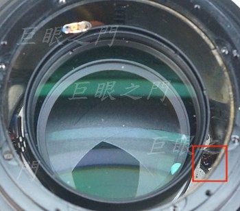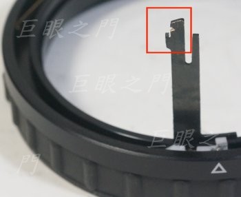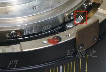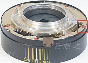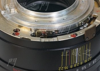 這個縫隙中可以看到光圈連桿的末端,要先把光圈環裝好,再由縫隙中去加工。