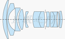 光學結構十群十二片,其實移軸鏡的原理只是像場涵蓋面較大,所以移軸時影像還可以涵蓋。移軸鏡主要是拍建築可以將建築物的垂直線拍直,此外也可以拍鏡子而不會拍到自己的影像。當然也有其他的功能,但是在數位時代,其實已經不是那麼需要了。幾年前用 12 mm 的超廣角拍一拍,裁切一下,其實也差不多,甚至用變形較小的廣角鏡直接拍再修正也可以。