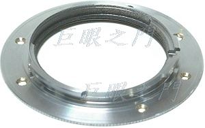 原來的接環取下,裡面很簡單,也就是六個螺絲孔,這個基準面算起的法蘭距其實很長,所以高興改什麼都可以,做個接環裝上就好,所以可以非破壞性的改。