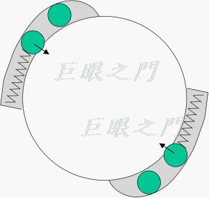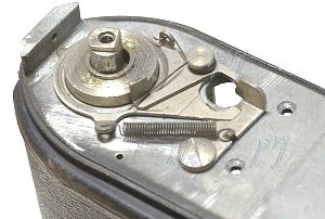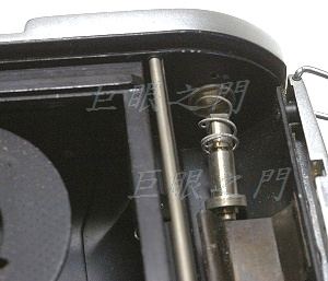 上片時軸心是順時針轉,此時鋼柱會被帶動縮在比較深處,而反時針轉的話,鋼柱會被帶動向凹槽稍淺處移動,此時就會頂住軸心,因而就很難轉了,這個機構可以防止上片軸逆轉。