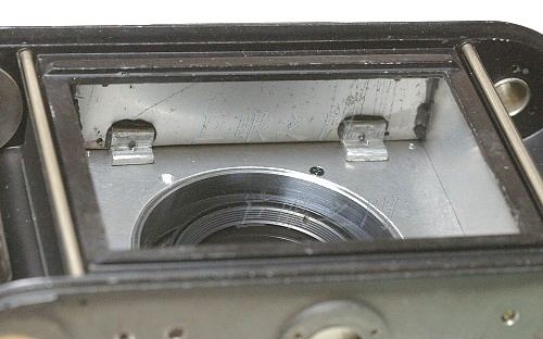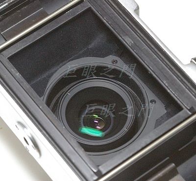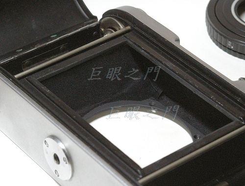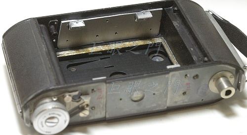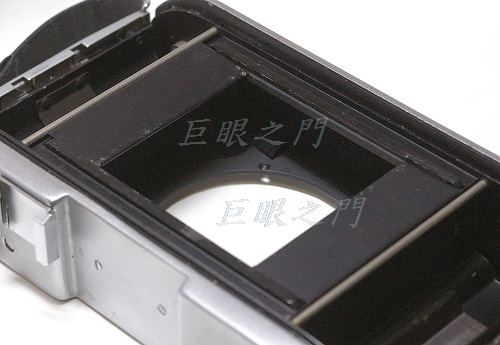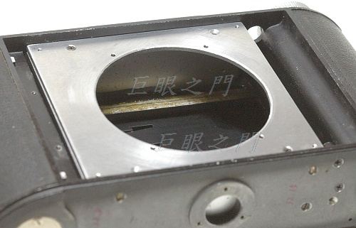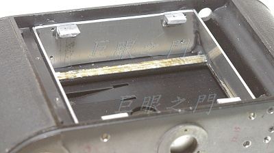 這個機身其實還可以拍 6×6,旁邊有兩片金屬片,原來是被托住底片用的彈簧片卡著,撥動一下就可以把旁邊蓋起來。