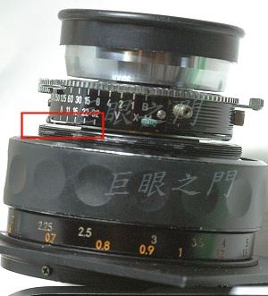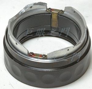 對焦環也車短了,裡面鎖了一片銅片,這片銅片可以在上圖中缺口部份轉動,於是就控制了對焦的範圍。
