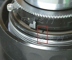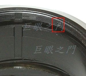 還有個小問題,這是機身內的狀況,對焦在近處時,鏡組前伸,紅框中會有複螺紋露出來,容易進去雜物,如果能製作個護環就會更理想,但是看起來不太好做,怕會導致暗角。