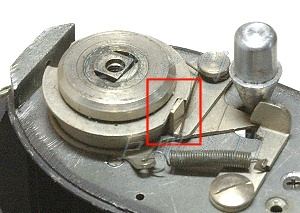 這個鈕是機頂左方的旋鈕,用來捲片的,一些零件的大致相對位置,有個桿子要留著,因為旋鈕轉半圈,要按一下桿子,所以桿子的功能要留著。