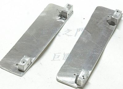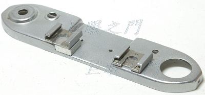 把原來固定鏡頭的架子都要拆掉,換成這兩片鋁板,末端的凸起鋁塊是要固定前面做好的鏡頭板的,這兩個鋁板的高度 (在圖中應該是每片的左右寬度) 很重要,因為那控制了鏡頭板到機身裡面的距離,所以要非常精密的量測,實際量的時候要由機身裡面的底片面量到鏡頭板,要用游標尺量到儘量的一致,否則像場會歪。