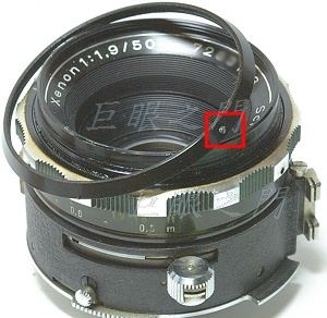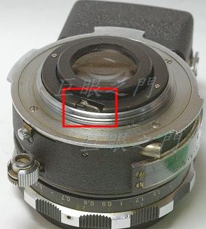 原來右上方的紅框中有個小金屬桿卡在一個洞中,只有凸出一點點,那是控制鎖測光表的外環轉動角度用的,圖中已經拔出來,所以看不到。