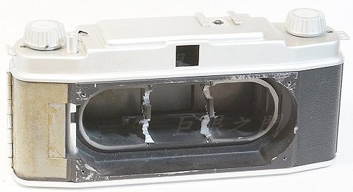 這是鏡主提供的一台機身,原來是拍立體照片用的,原來有兩個鏡頭,中間有隔板。把隔板都磨掉以後就可以作為寬景相機用的機身。但是磨這個還真是花時間啊,鏡主已經磨了一些。