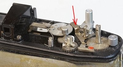 頂蓋取下,這裡原來有限制底片過片的機構,這些都沒用了。