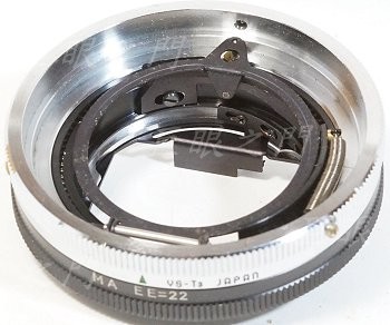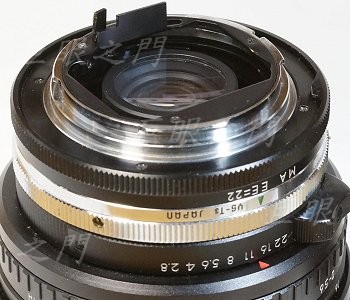 有點年紀的鏡頭,這種 XQ 系列其實本來就是可換接環的,只是現在要找這種接環其實不太容易,一定有人有,只是不知流落何方。原來的接環上面寫 MA,可是看起來就不是 Minolta ,應該也不是 Mamiya,應該是 Konica AR 吧。