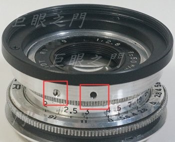 重新做了一個鋁環,左方是固定在對焦環用的止付螺絲孔,右方的孔洞,是對著原來對焦環固定在鏡身上的止付螺絲孔。這樣即使鬆了也不用去拆掉外面的鋁環。黑環是鎖前面的遮光罩用的螺紋環。
