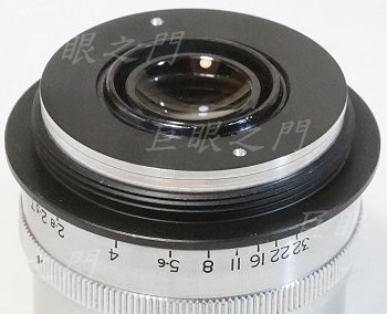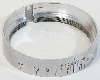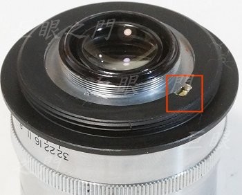 原來鏡身上有個凹槽,應該是鎖對焦定位器的,可以用來鎖個銅片,仍然作為景深環與後面螺紋環的定位之用。