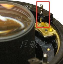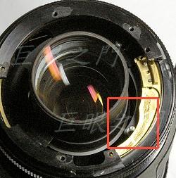 這是最尾巴的兩截裝在一起的樣子,可以看到光圈環頂住弧形金屬片的狀況。